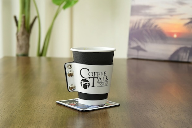熱い飲み物を入れたカップに巻くスリーブには最新作のタイトルロゴを、コースターには本作のキービジュアルをそれぞれあしらったデザイン。