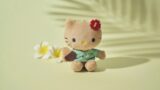 日焼けしたキティがパイナップル柄のアロハシャツにお着がえして、南国感たっぷりの装いに♪
