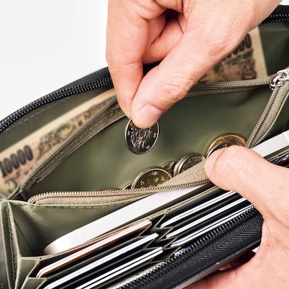 ・お札、スマホ、レシートなどを収納できる3つのフリーポケット