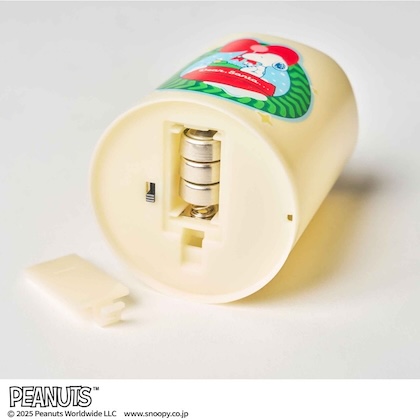 ホリデーシーズンの夜をやさしく照らす、スヌーピーのゆらめくキャンドルライト。