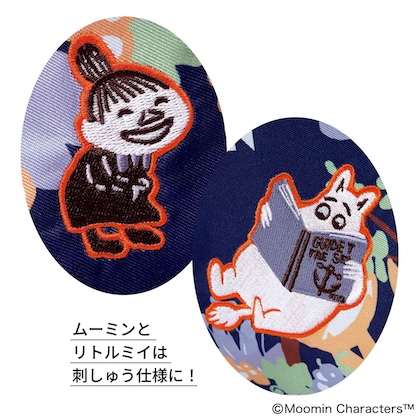 ムーミンとリトルミイは、あたたかみのあるクラフト感たっぷりの刺しゅう仕上げ。