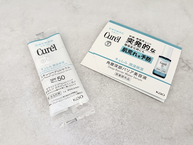 キュレルのセットは今春の新発売。角層深部バリア美容液2包とUVセラム6gのペア。